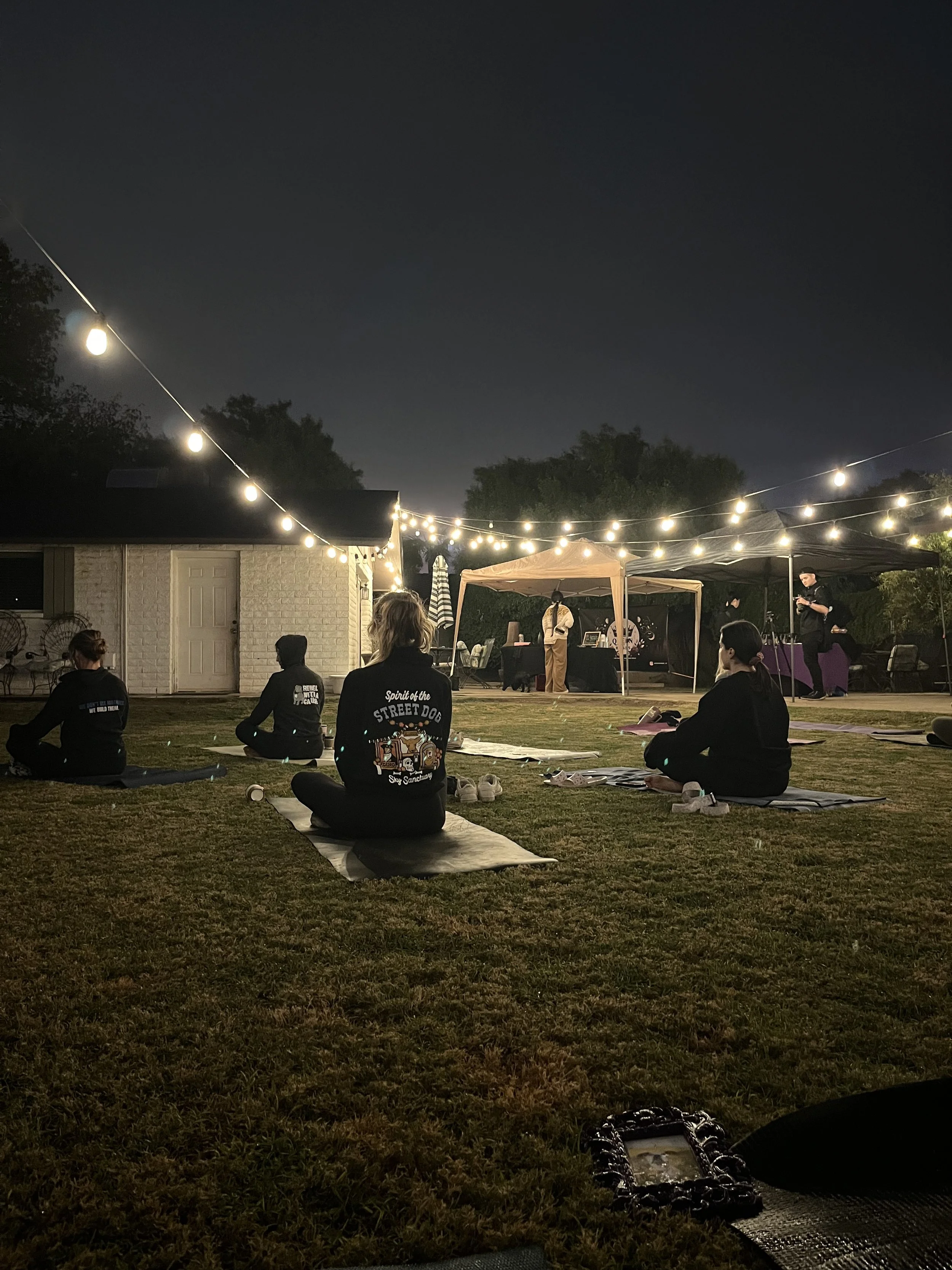 In addition to the yoga practice, Paws + Breathe events often feature opportunities to interact with adoptable dogs from local rescues, enjoy snacks and beverages, enter raffles, and connect with others in the community. We also collaborate with local small businesses to enhance the event experience.