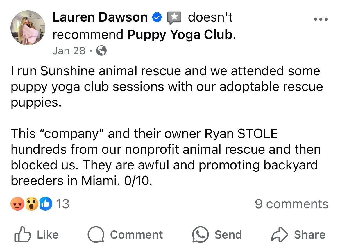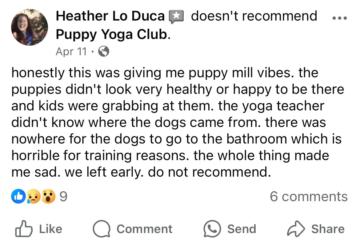 Several rescue groups who’ve partnered with Puppy Yoga Club have since spoken out, alleging that donations raised during co-hosted events were never actually received.