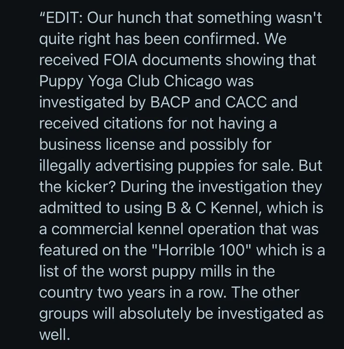 Puppy Yoga Club has publicly acknowledged working with breeders in order to obtain specific breeds for their classes. These breeders are focused on producing puppies on-demand and for profit — a direct contradiction to animal welfare ethics.